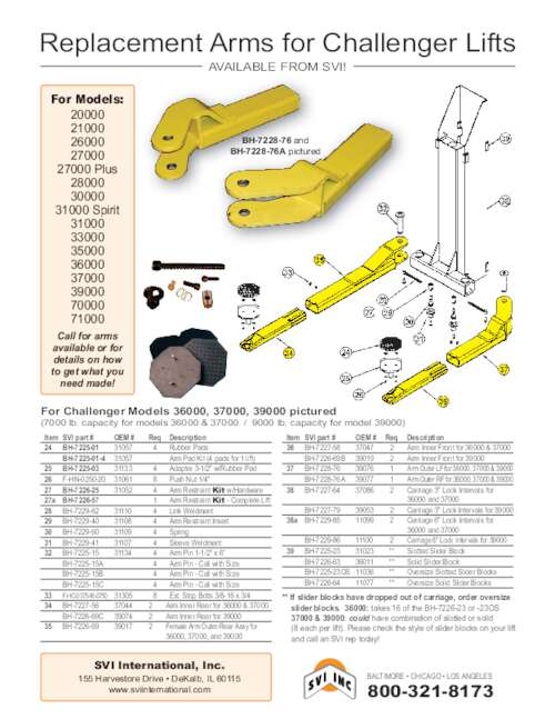 Arms for Challenger Lifts