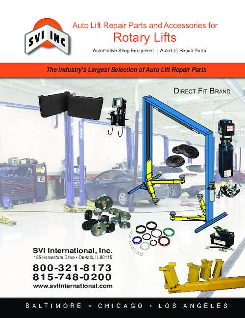 Check out our catalog book / brochure of repair parts for in-ground and surface mount Rotary lifts! SVI offers a large selection of Direct Fit™ repair parts for most makes and models of lifts / hoists.