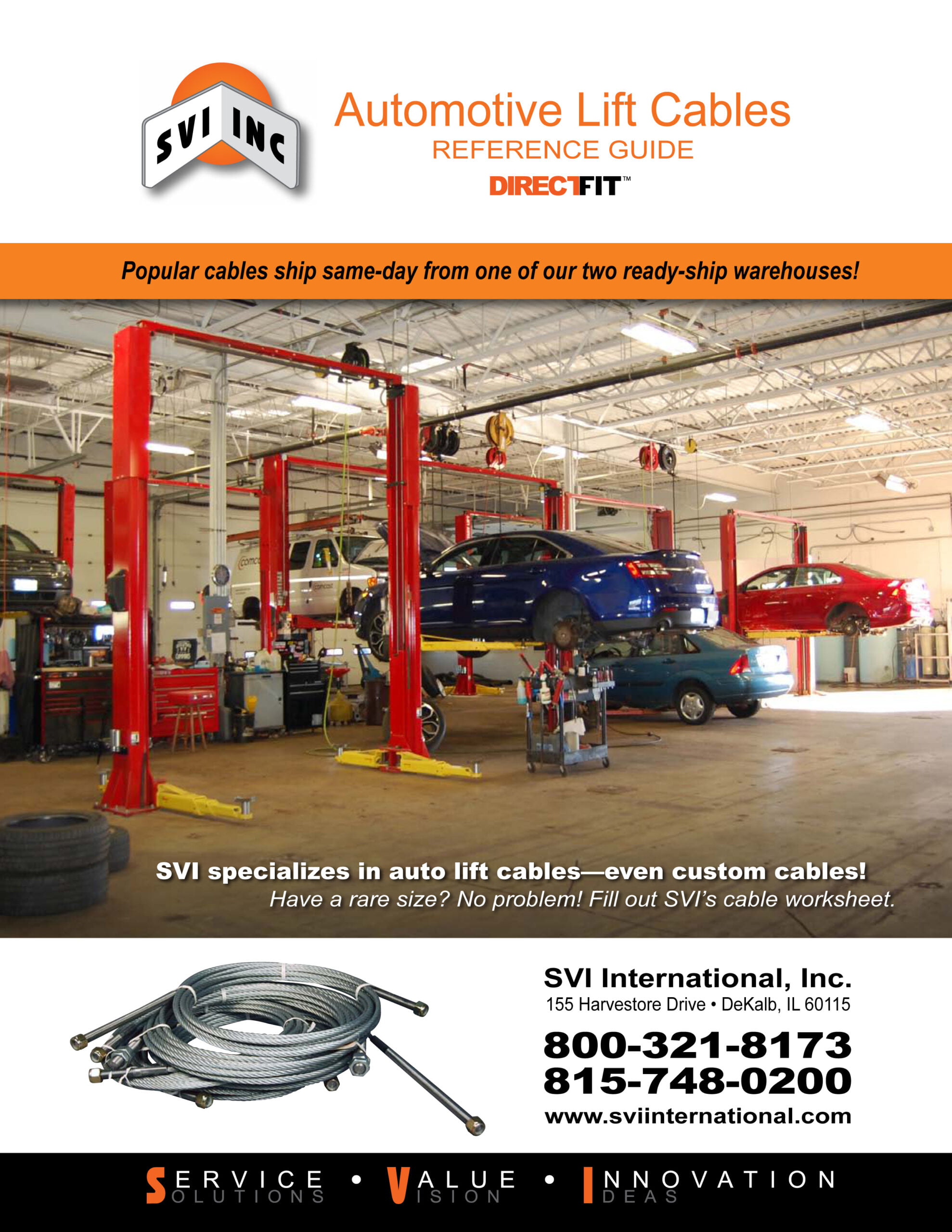 Check out this catalog for Auto Lift Cables / Wire Rope including Equalizer Cables and Lifting Cables. SVI also offers other types of cables including lock release cables—Contact SVI today for a quick turnaround on in-stock cables!