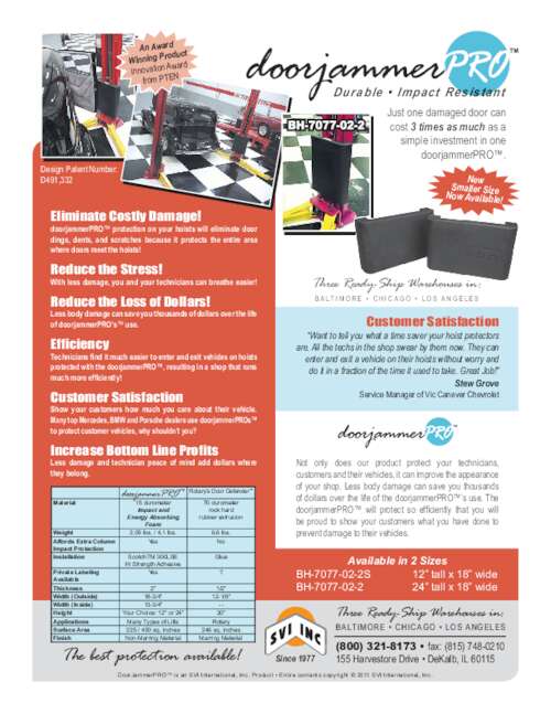 SVI offers DoorJammer Pro™ Car Door Protectors / Door Guards for 2-Post Lifts!