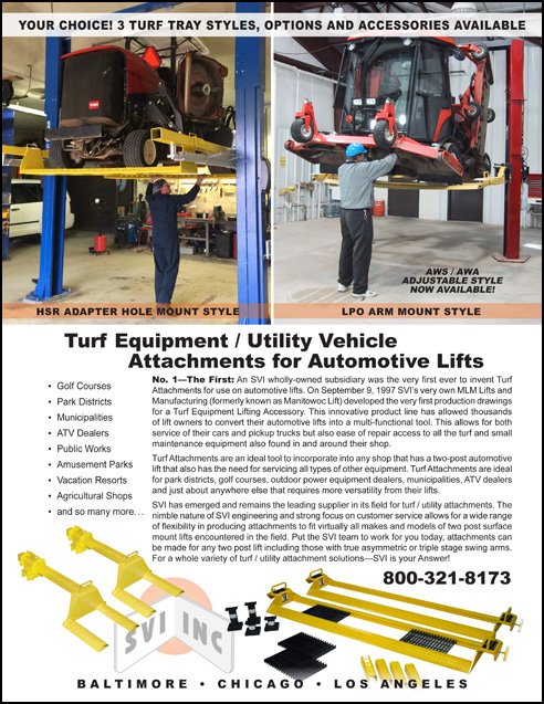 Easily convert your 2-post surface mount auto lift or in-ground side by side into a turf lift with SVI Turf Lift Attachments