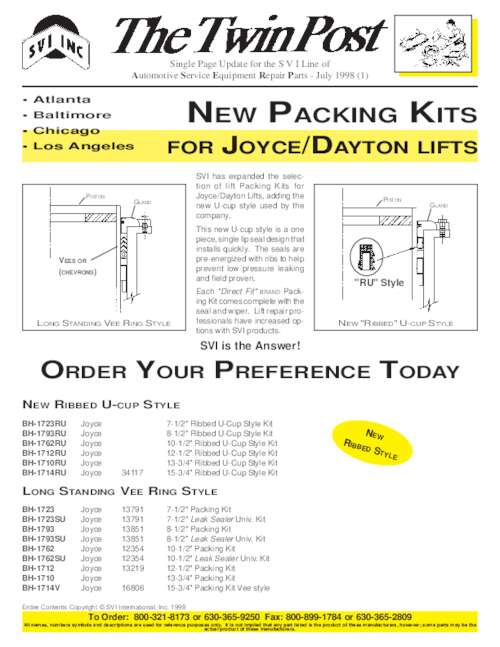 New Packing Kits for Joyce/Dayton Lifts