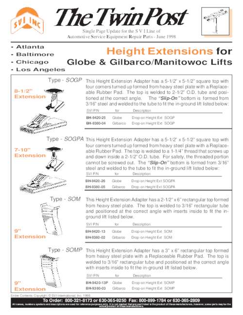 Height Extensions for Globe and Gilbarco/Manitowoc Lifts