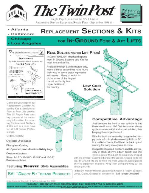 All names, numbers, symbols and descriptions are used for reference purposes only. It is not implied that any part or product listed is the actual product of these manufacturers. SVI does not represent and is not associated in any way with any other companies.