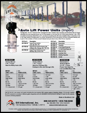 Also Available—Call SVI for ALL your power unit needs including the ever-popular SPX version made in Rockford, Illinois. SVI proudly supplies the SPX versions in a number of different gallon capacities and with selectable correct pressure settings to match the lifts capacity or power unit being replaced.