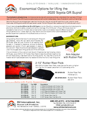 Use on any 4″ wide lift arms for specialty lifting point application on vehicles such as Range Rover and 2020 Toyota GR Supra. Fits directly over and top of 4″ wide lift arms.