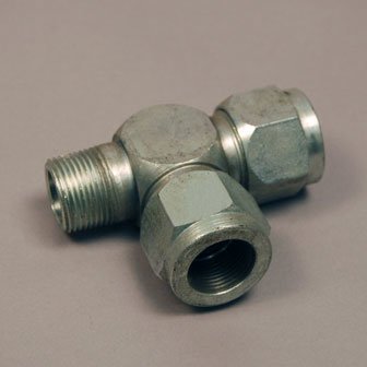 Steel Hydraulic Tube Fitting, Male Run Tee Tube End to Male Pipe End with Tube Side Outlet.
