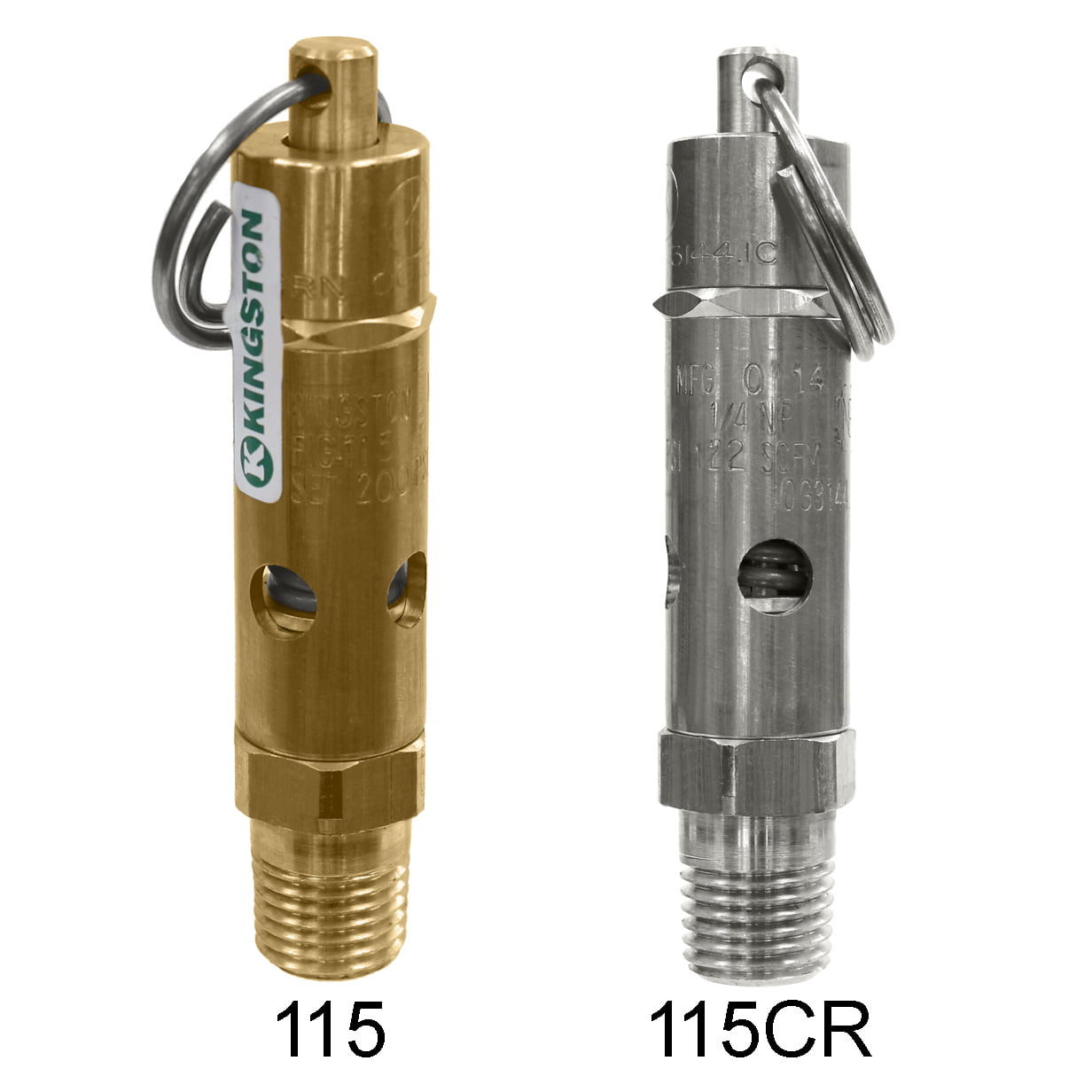 Kingston 115 ASME Code Soft Seat Safety Valve has a Viton Seal with Positive Stop for a bubble-tight seal. Available in Brass Construction or Stainless Steel Contruction.