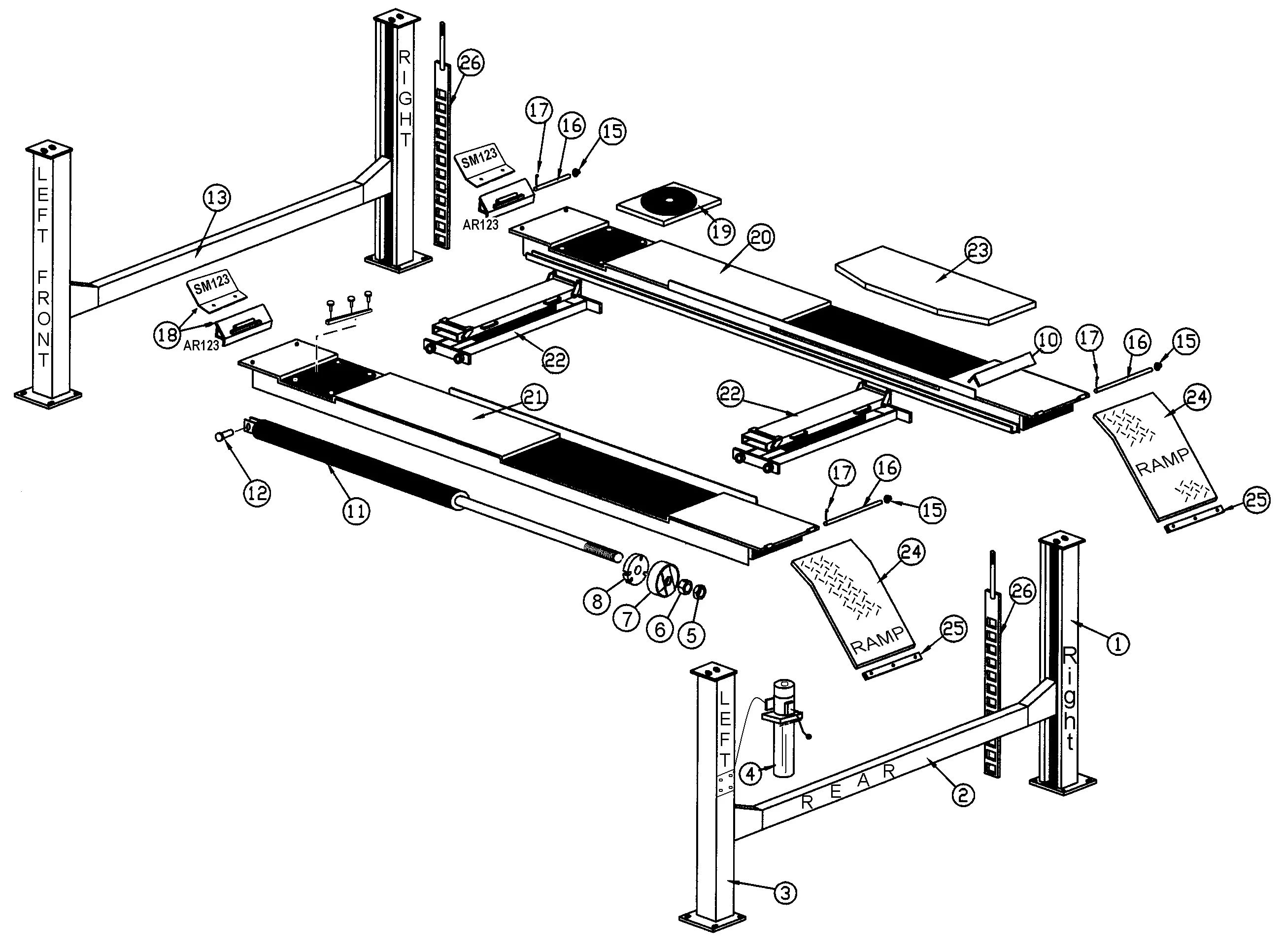 Repair parts for Rotary Lifts Model SM123 are available from SVI.