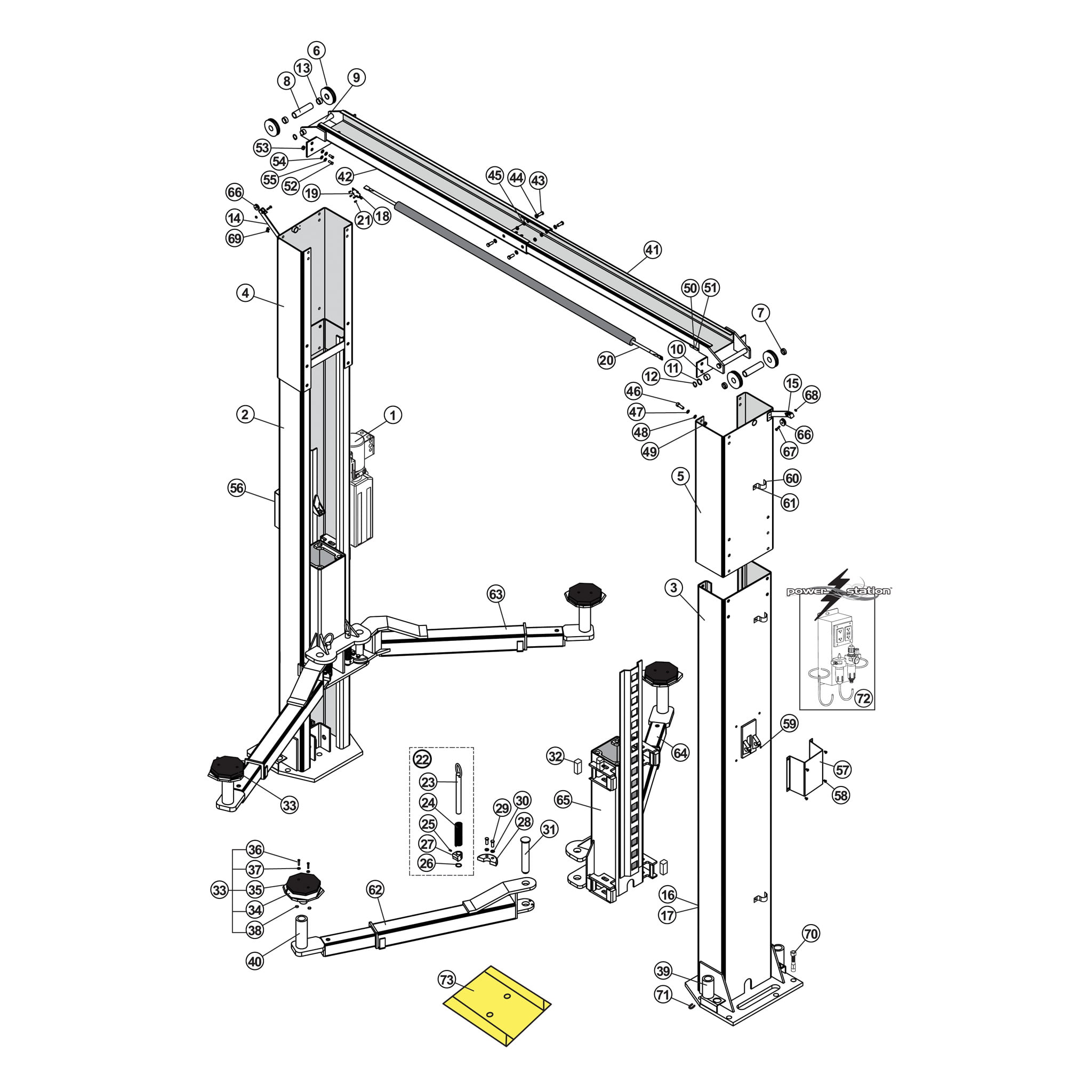 SVI is the go-to supplier for repair parts for Tuxedo Lifts. Whether you need equalizer and lifting cables / chain, sheaves, slider blocks, hydraulic cylinders, seal kits, power units, overhead stop limit components, carriage locks and components, arm pins, height extensions and pads, or another part for your 2-post Tuxedo lift, SVI has what you need. We offer excellent pricing, top-notch customer service, and in-stock items usually ship out the same day.