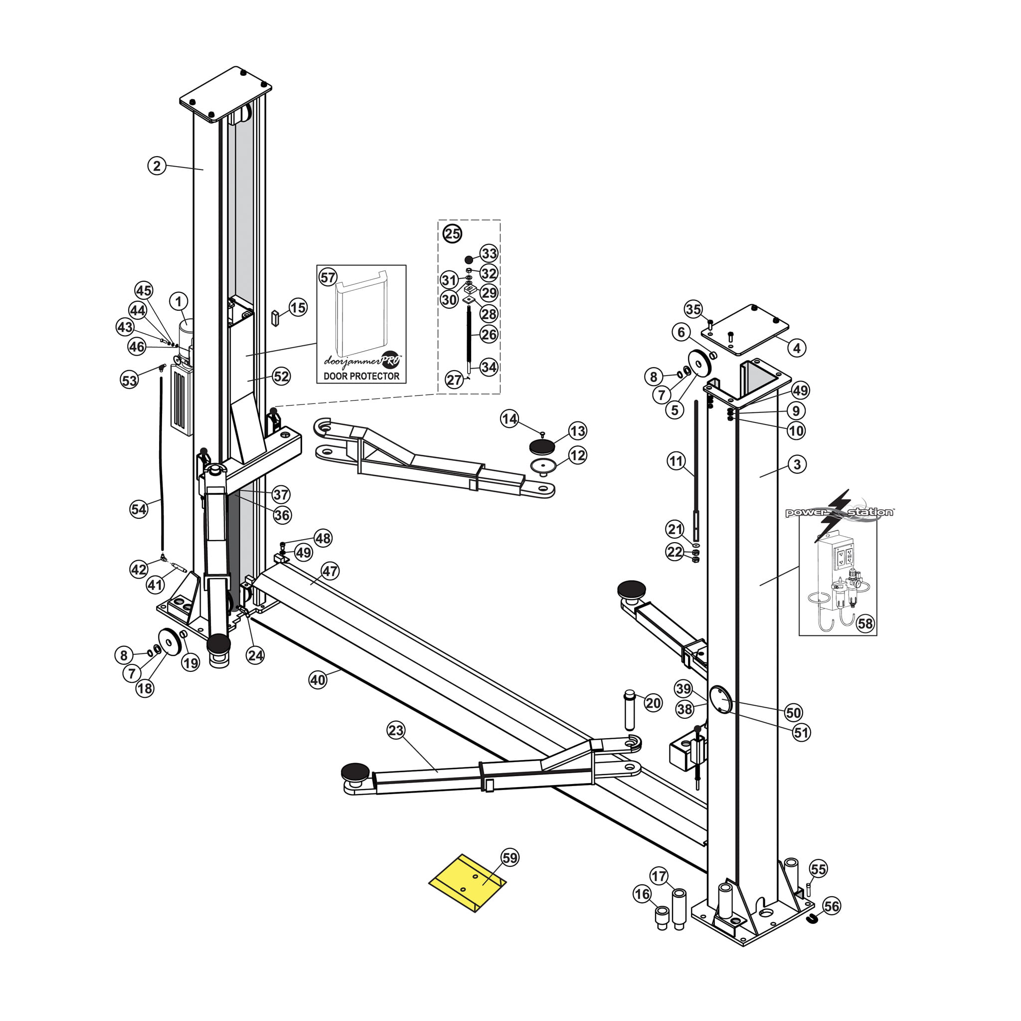SVI is the go-to supplier for repair parts for Atlas Lifts. Whether you need equalizer and lifting cables or chain, sheaves, slider blocks, hydraulic cylinders, seal kits, power units and parts, overhead stop limit components, carriage locks and components, arm pins, height extensions and pads, or another part for your 2-post Atlas lift, SVI has what you need. We offer excellent pricing, top-notch customer service, and in-stock items usually ship out the same day.