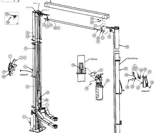 Above Ground 2-Post Lifts - AMMCO / Hennessy - AL 7 Old Style